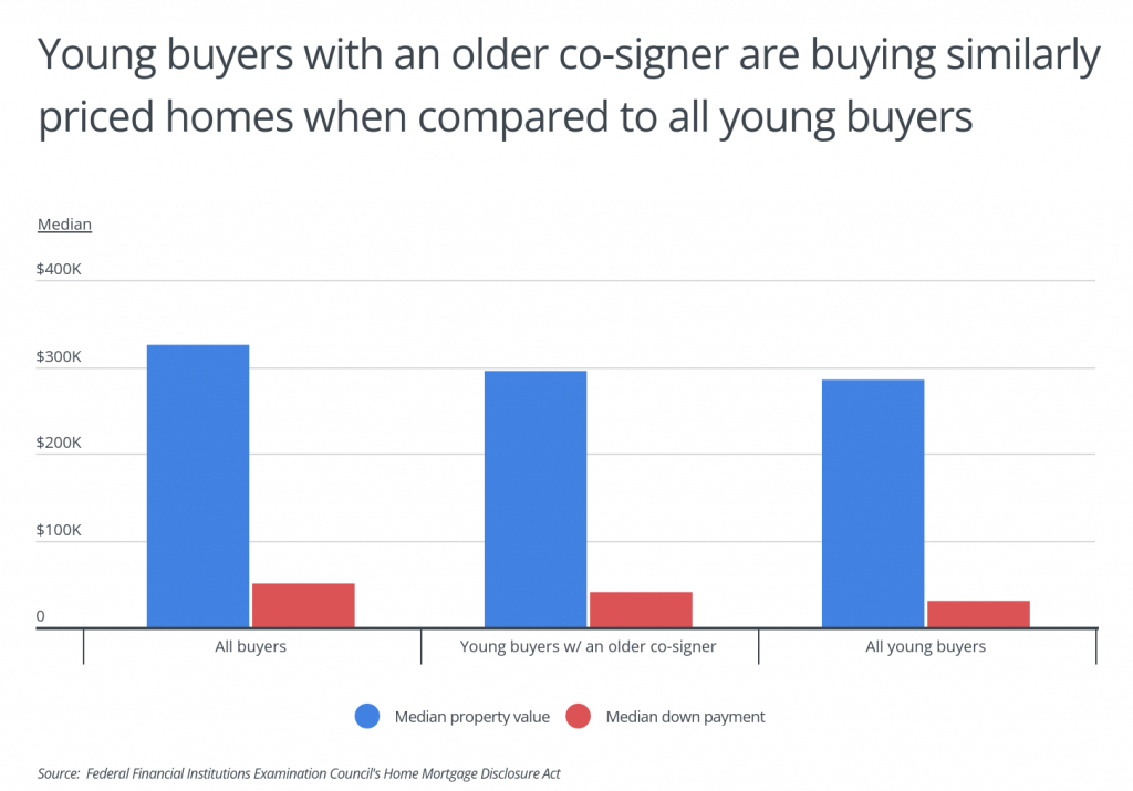 - Median down payment for young buyers w/ an older co-signer: $100,000