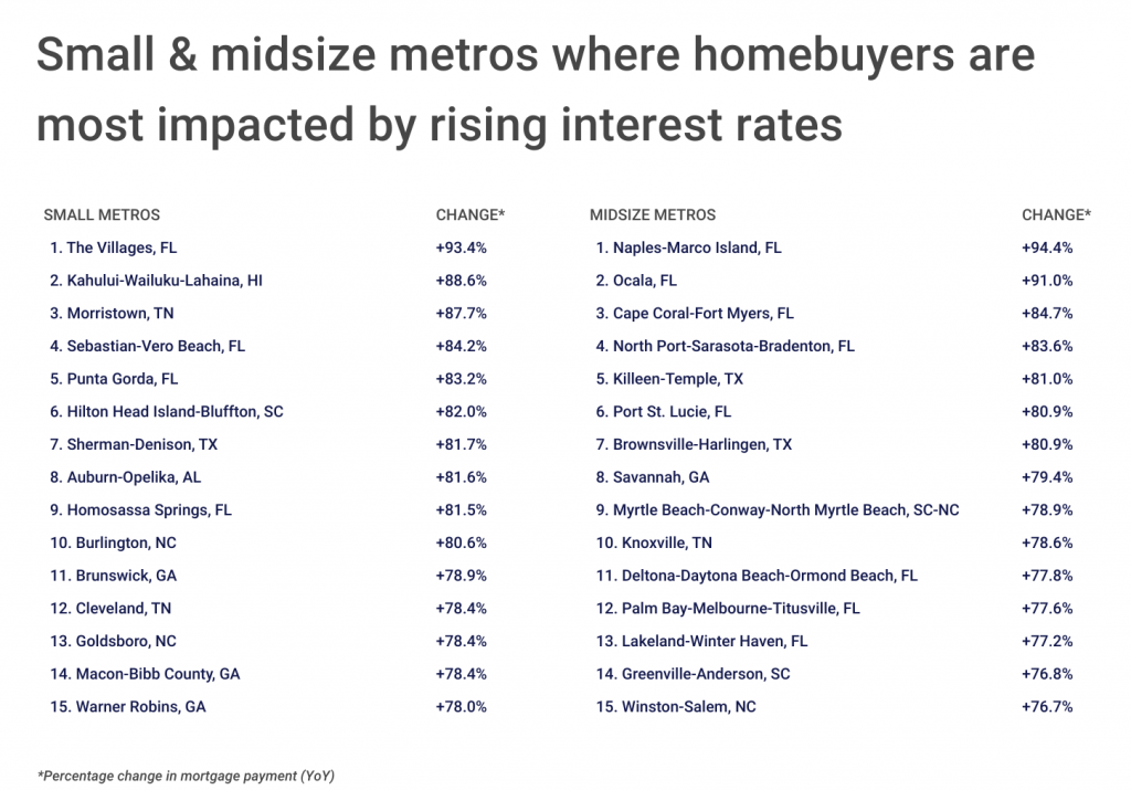 Here are the U.S. metropolitan areas where homebuyers are most impacted by rising interest rates.